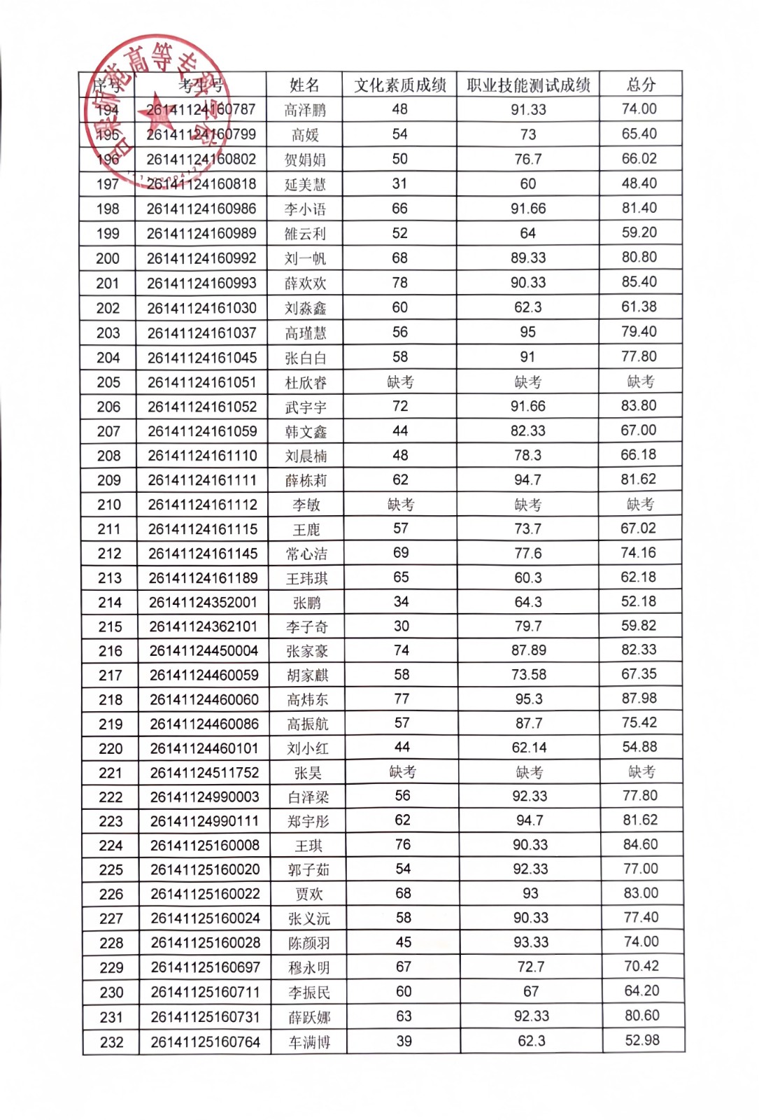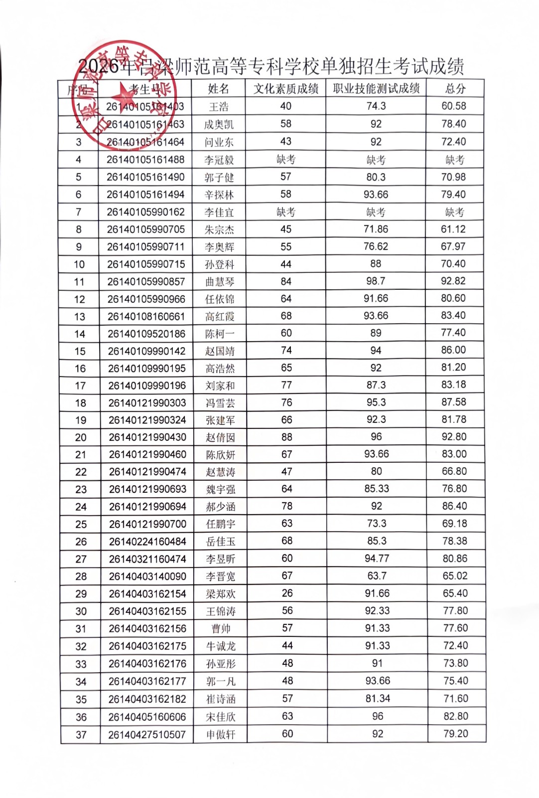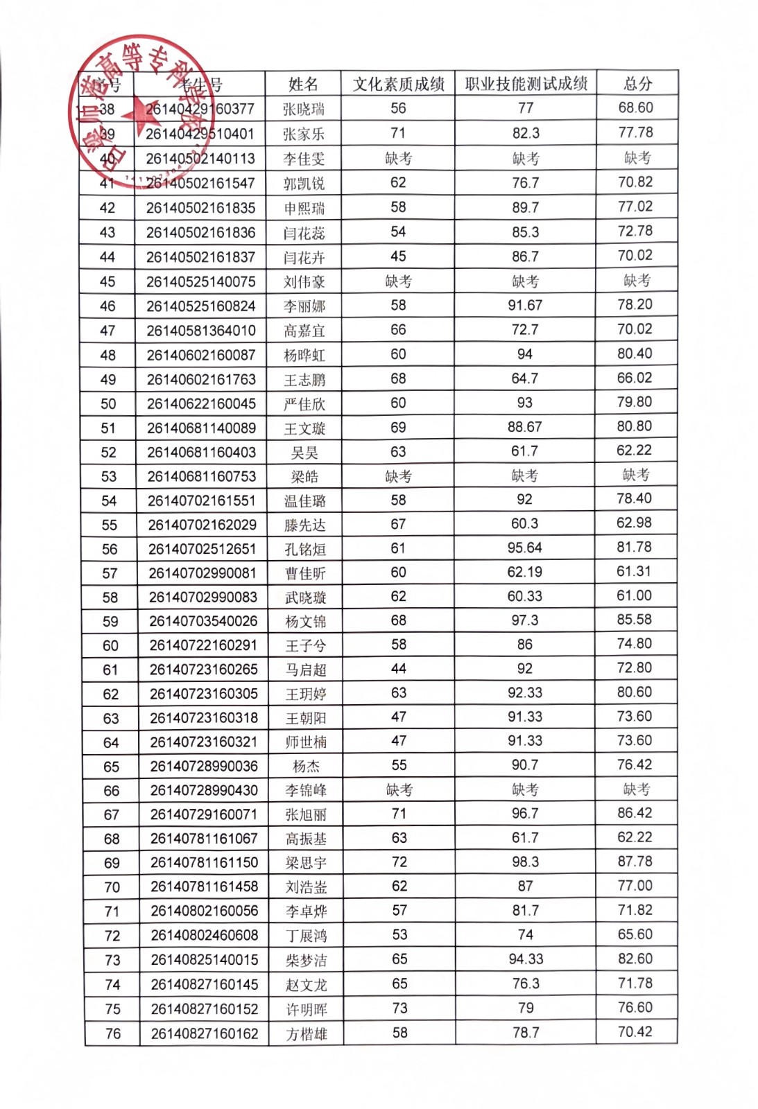 根据山西省单独招生工作统一部署及我校招生工作安排,本着公平、公正、公开、择优的原则,我校已完成2026年单独招生考试评卷、成绩汇总及审核工作。